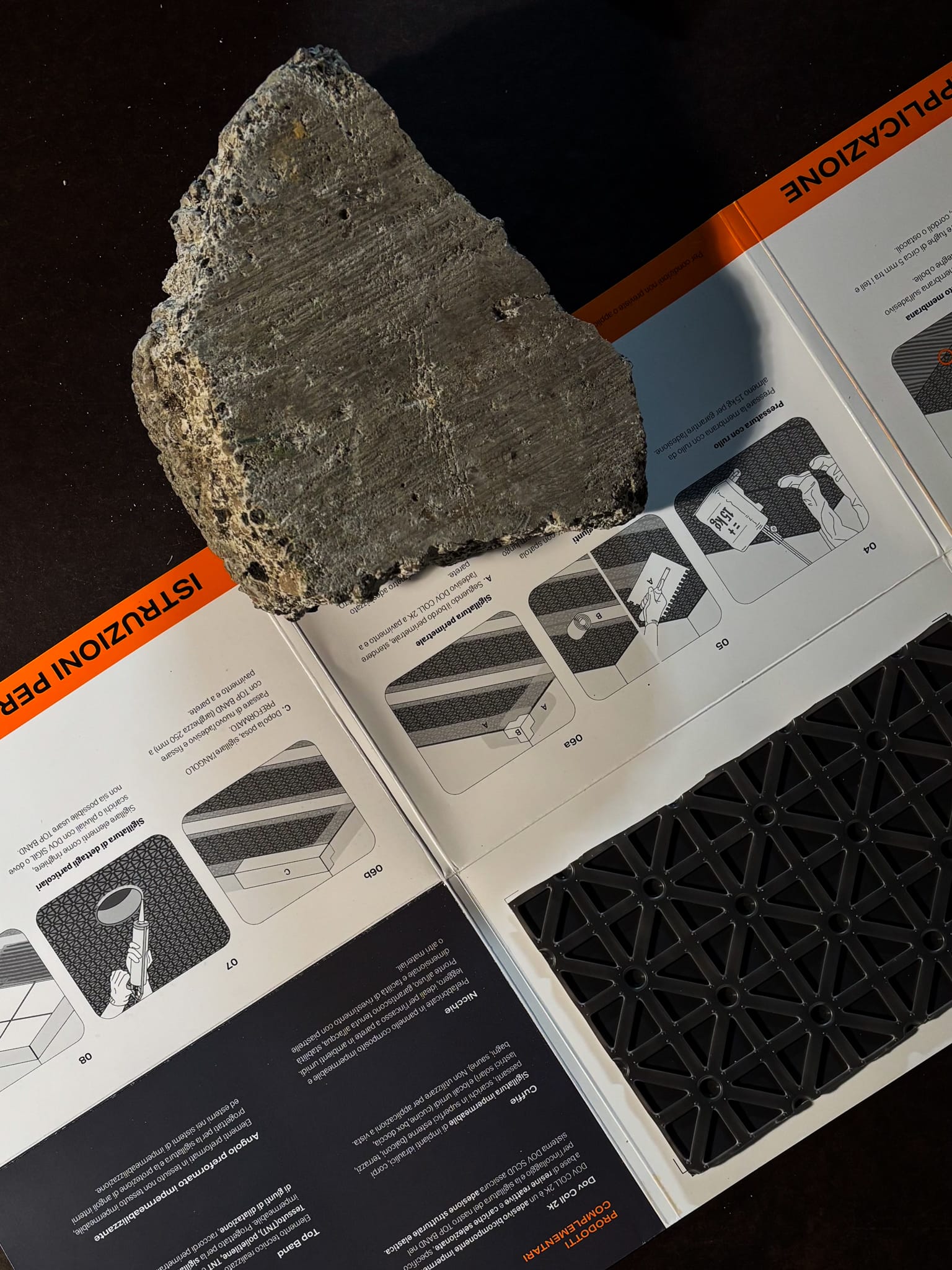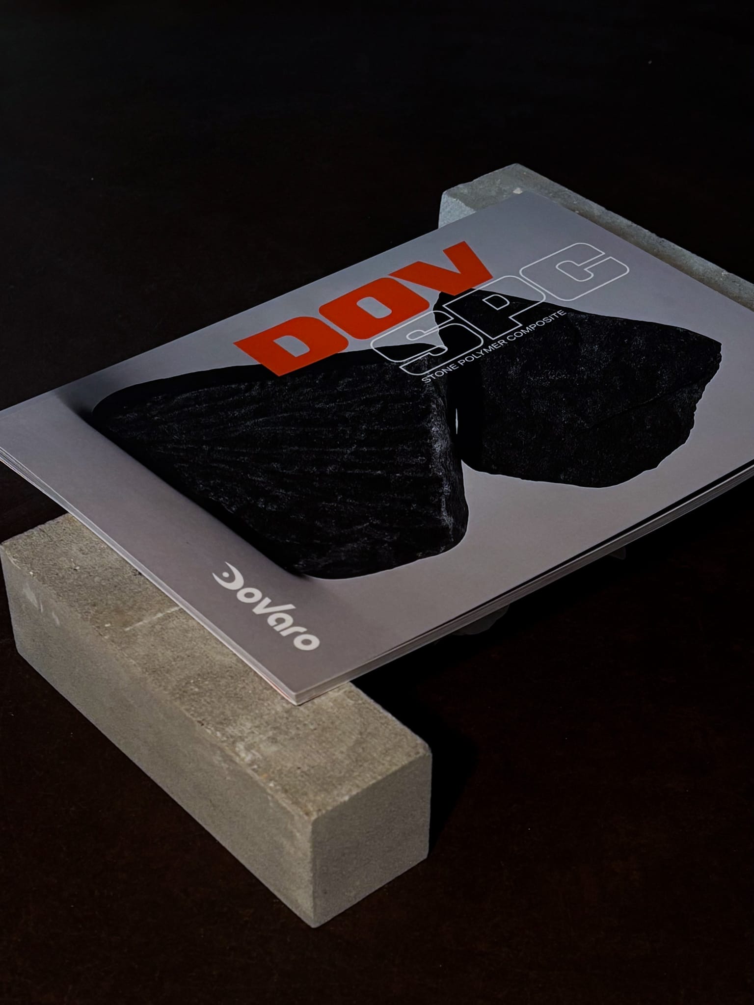 The brochure adopts a more evocative visual and editorial language, designed to convey the solidity and durability of the SPC material and its components.