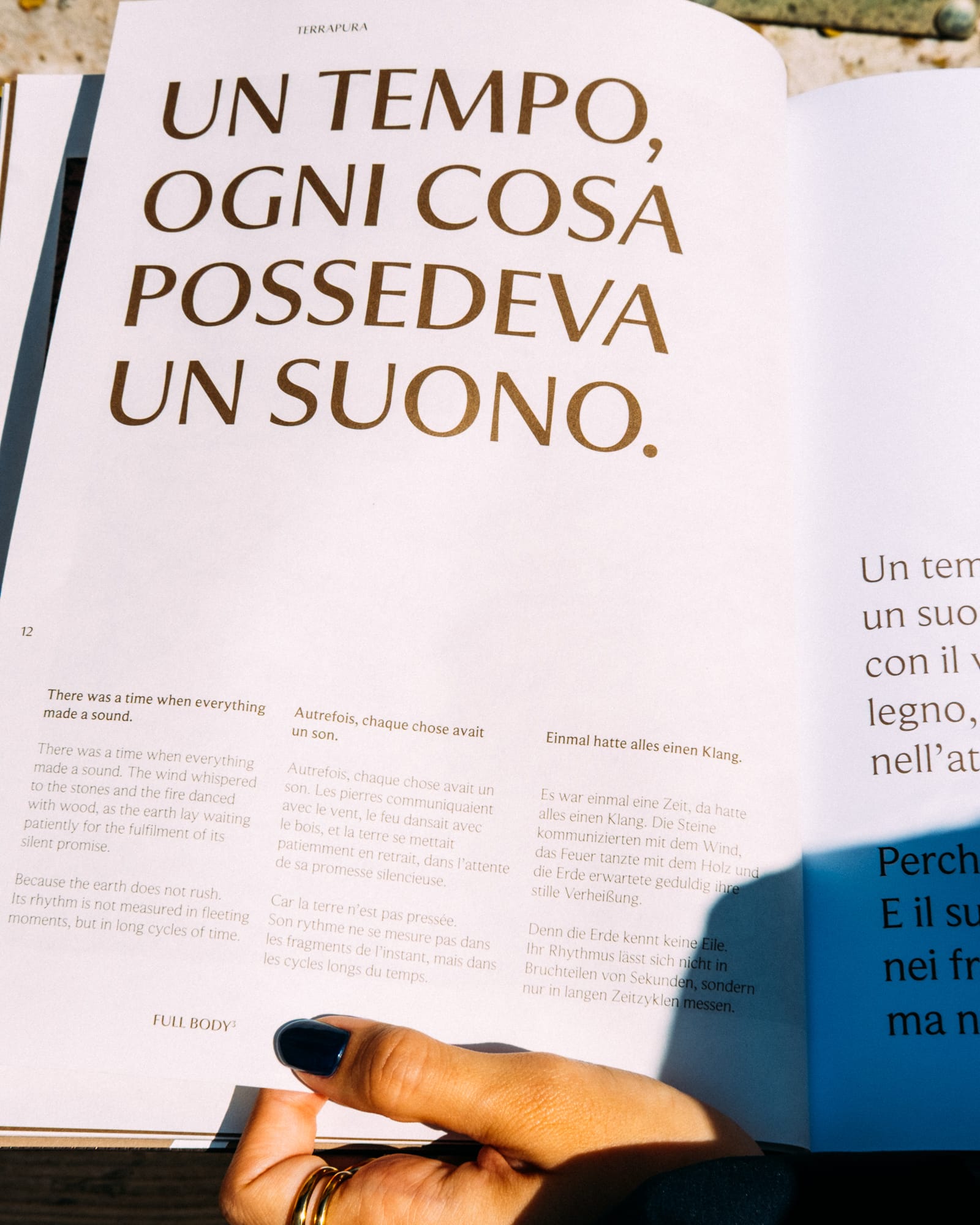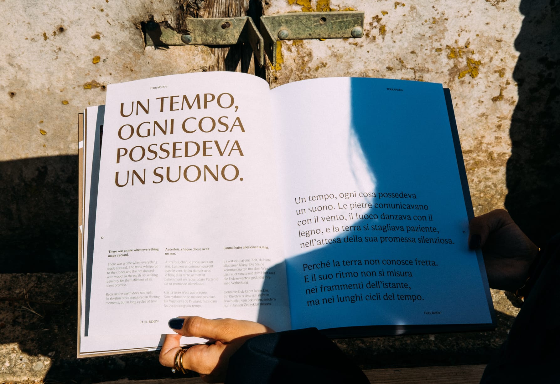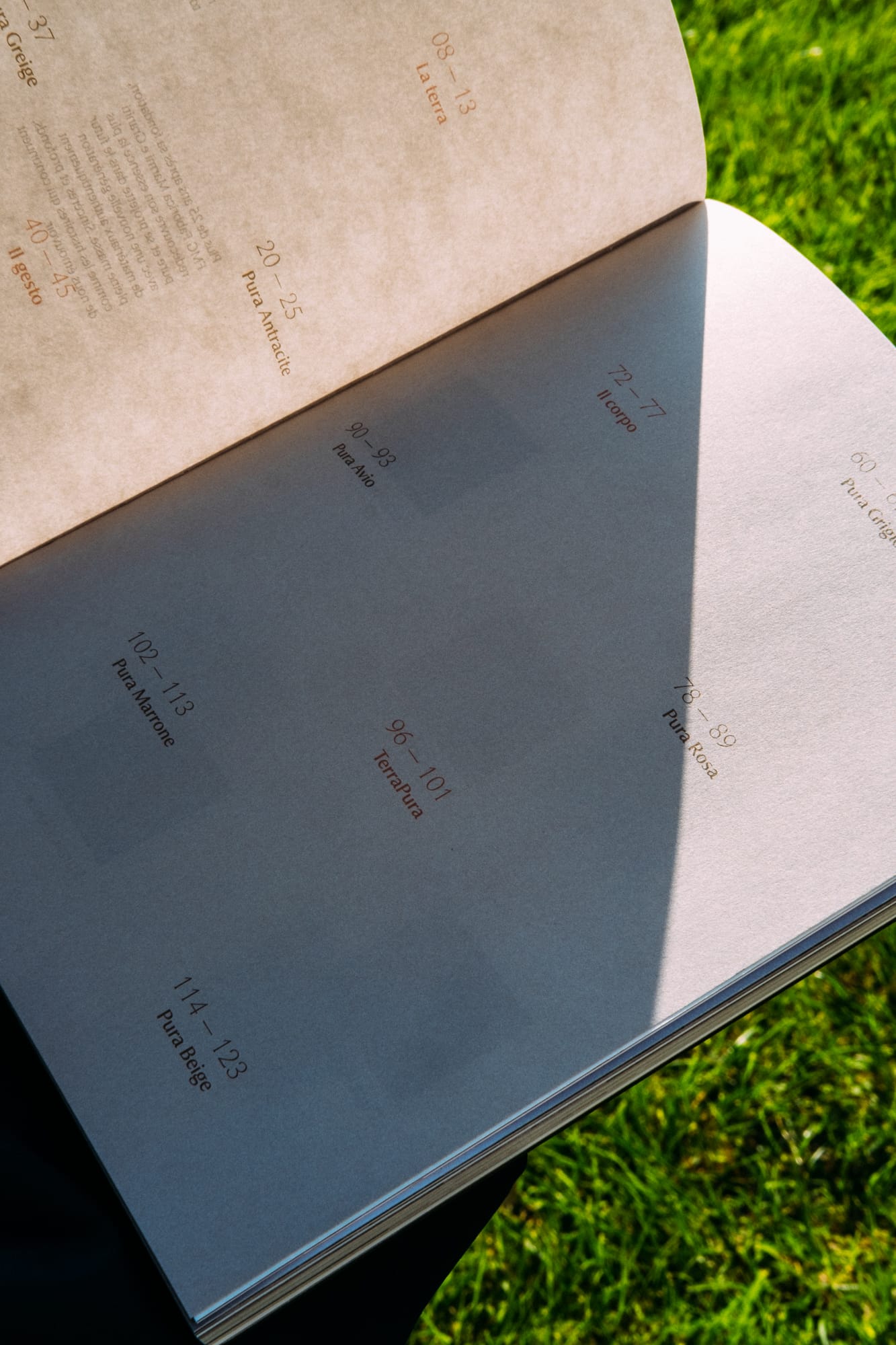 The Terrapura catalogue, beyond presenting the environments in which the product is applied, aims to evoke and communicate the sensory qualities linked to the processing of raw earth.